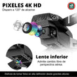 Con sus dos cámaras de ultra resolución 4k. Puedes capturar desde ángulos diferentes y con una claridad increíble, gracias a su conexión Wifi podrás conectarlo y controlarlo desde tu celular con la aplicación compatible para Android y IOS.